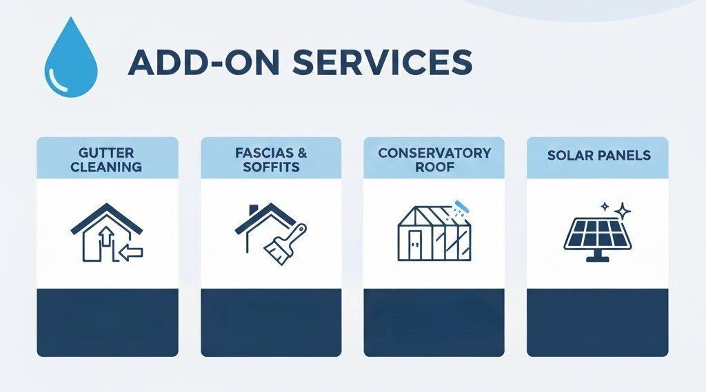 • Per-window pricing: Usually £1–£8 depending on size, height, and access difficulty.