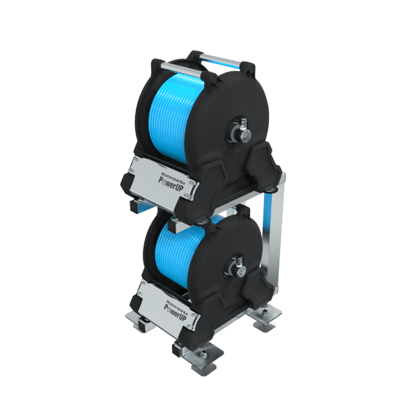 Configure your hose reels in any way you choose for optimal working conditions. The frame allows you to power both reels simultaneously when working as a two-person team or use one reel as a filling reel when working alone. This flexibility ensures you can work together comfortably and efficiently.