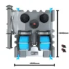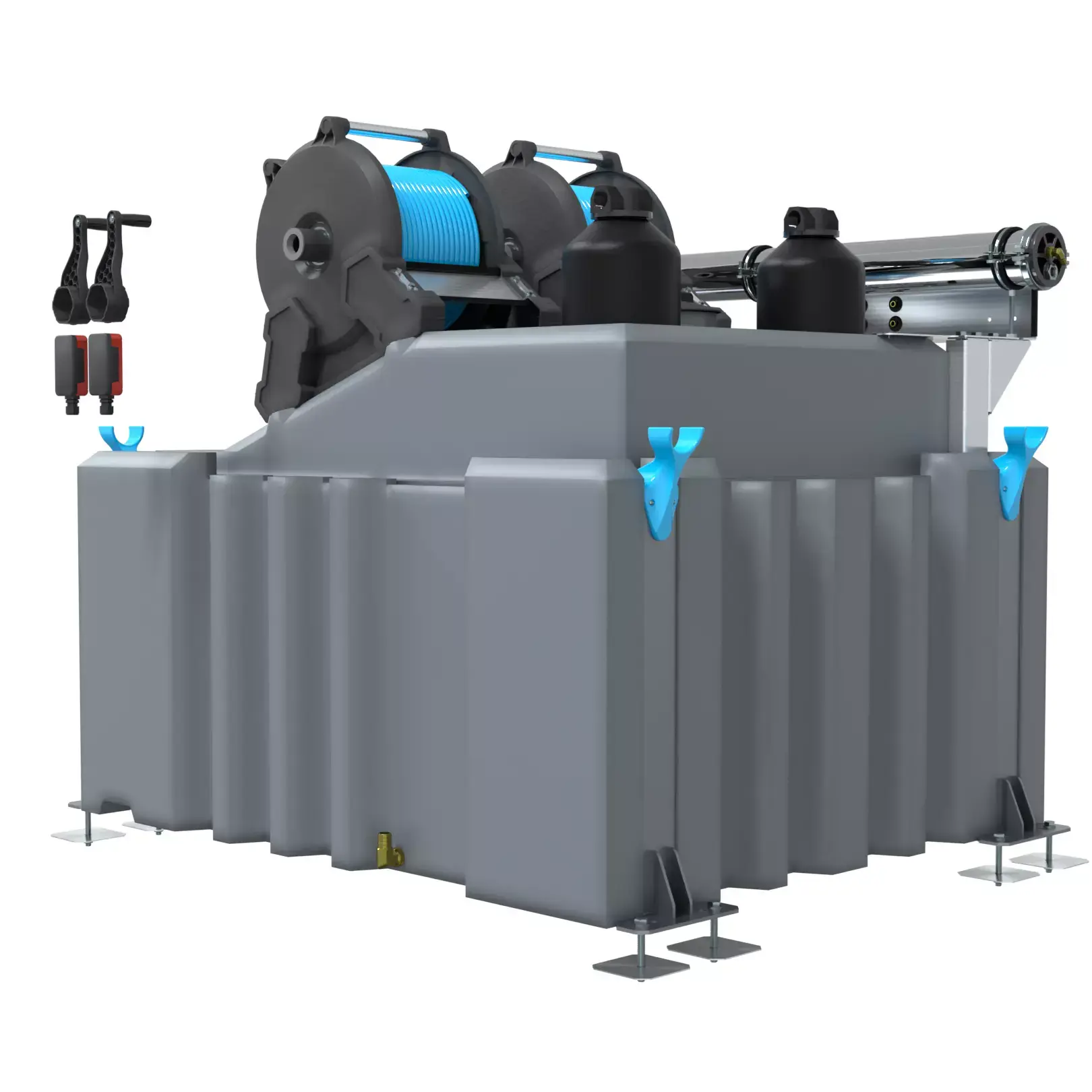 At the core of the system is its spacious 1000-liter Waterworks tank, meticulously crafted from thick Polyethylene for unparalleled durability and longevity. This tank design maximizes cleaning efficiency by providing ample storage capacity for purified water, minimizing the need for frequent refills during extended cleaning sessions. Additionally, the tank’s robust construction ensures resilience against external elements, making it suitable for use in various environmental conditions.