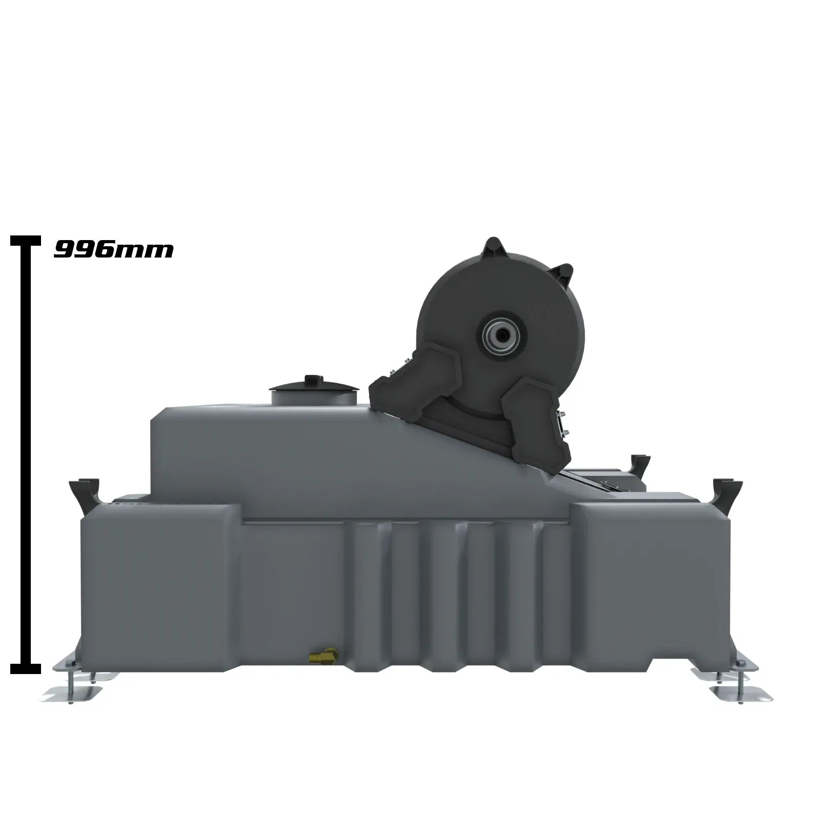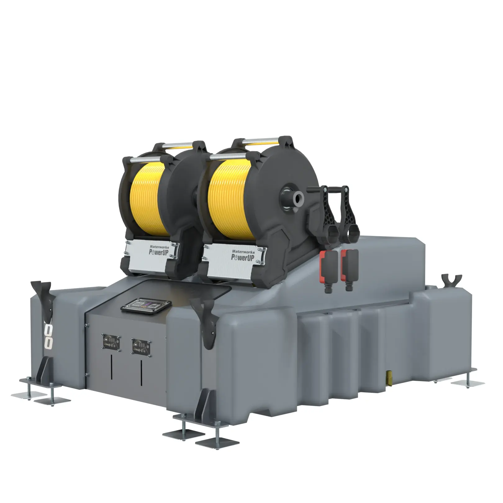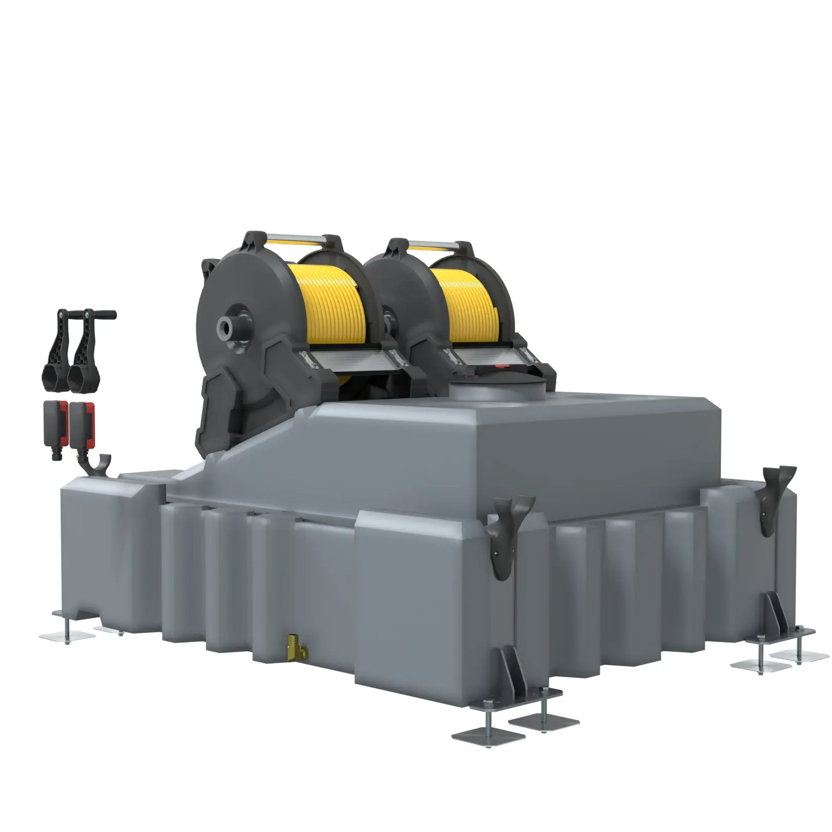 The unique 750-liter Waterworks tank is crafted from thick, tough Polyethylene, offering both durability and efficiency. Its exclusive design maximizes space and cleaning efficiency, while pre-moulded fixing positions allow for easy upgrades. Designed to support reel mounting, this tank provides additional space-saving benefits, making it a valuable asset for professional window cleaning systems.