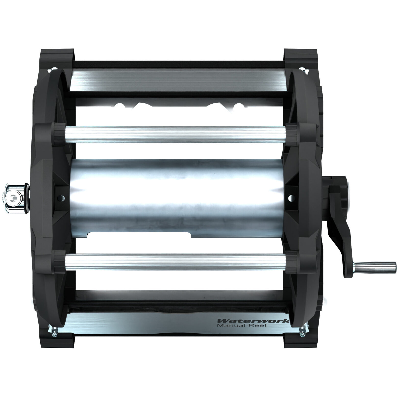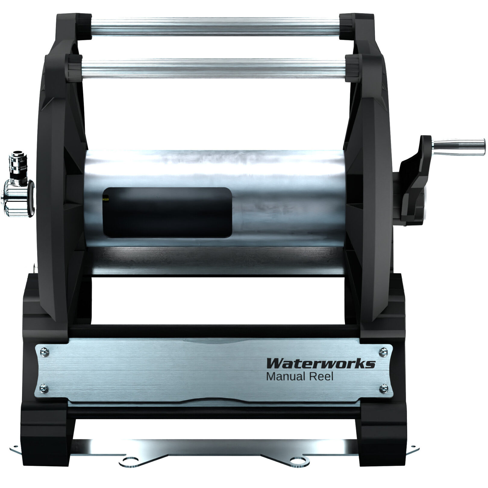 Featuring a heavy-duty composite winding handle and sealed roller bearings, the Waterworks XL Manual Industrial Hose Reel offers smooth and easy hose deployment without over-spinning. The high-pressure stainless steel rotary union, rated at 4000 PSI, comes with an S26 quick-release coupling and plug, making it suitable for use with hot water as standard.